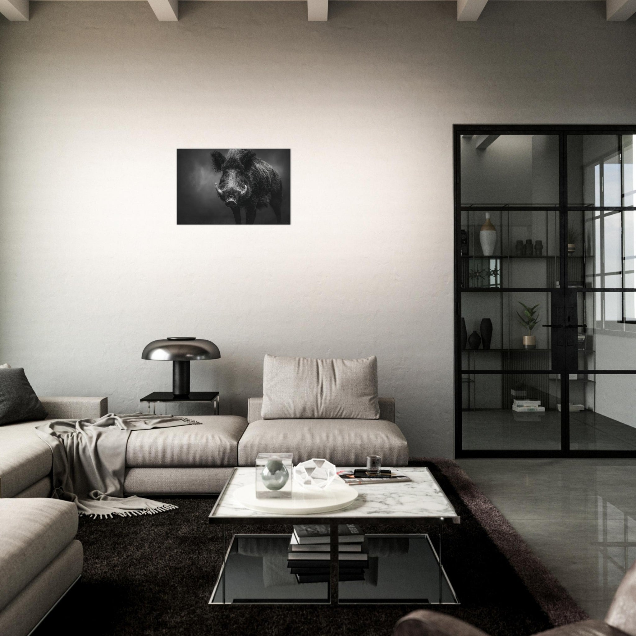 „Wild Boar Looking Directly Forward Bristled“ fängt die raue, ungezähmte Präsenz dieses rauen Waldtiers ein. Das struppige Fell, der intensive, nach vorne gerichtete Blick und die kraftvolle Silhouette werden durch detaillierte KI-Generierung in eindrucksvollem Schwarzweiß wiedergegeben.